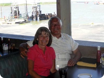 The Exxon Baytown Refinery, the largest refinery in the USA and where our youngest daughter Carrie is employed as a chemical engineer, is located on this channel and was in view out the window of the restaurant. Look real close and you can see the refinery.