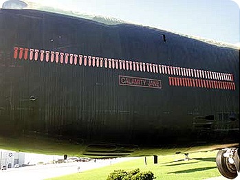 This aircraft was among 170 B-52Ds manufactured by Boeing Airplane Company, and was equipped exclusively for long-range bombing missions. "Calamity Jane" was used during Vietnam operations. "