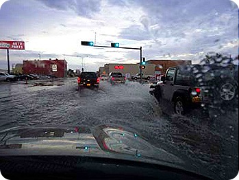 Driving through downtown Carlsbad proved interesting. Due to the storm and the lack of storm drains in desert towns, the streets were flooded! I was a little nervous driving through such deep water – seemed a foot deep at most intersections. Most of the people driving were in pick-up trucks. Our Jeep Liberty sit higher than a regular car and handled the situation without any problem....whew!