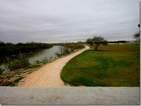 As you walk across, you can see the Rio Grande River that many illegals try to cross over to the USA. This is a view of the USA side. See the wall in the background?