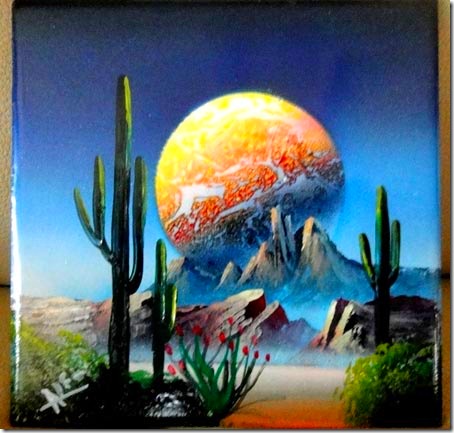 Marsha found the Mexican tiles she was in search of for her basket-making hobby. Not only did she find finished tiles, but we found a family of painters that would paint scenes on tiles for her. These brothers, Jose & Alfonzo (in two different locations in Progresso), use spray paint and little bits of torn paper to complete these amazing paintings.