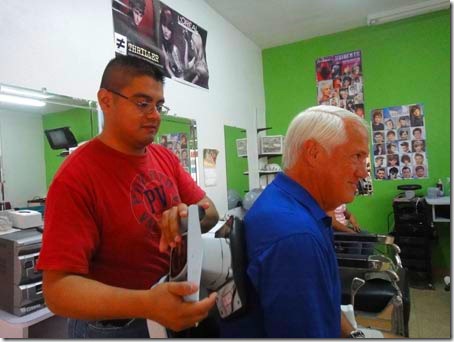 With a “clean” smile on our faces, we headed out to try to make a deposit in the Mexico economy. And a deposit was certainly made! Paul purchased a belt and got a hair cut that comes with a free massage…both for a mere $5.00.